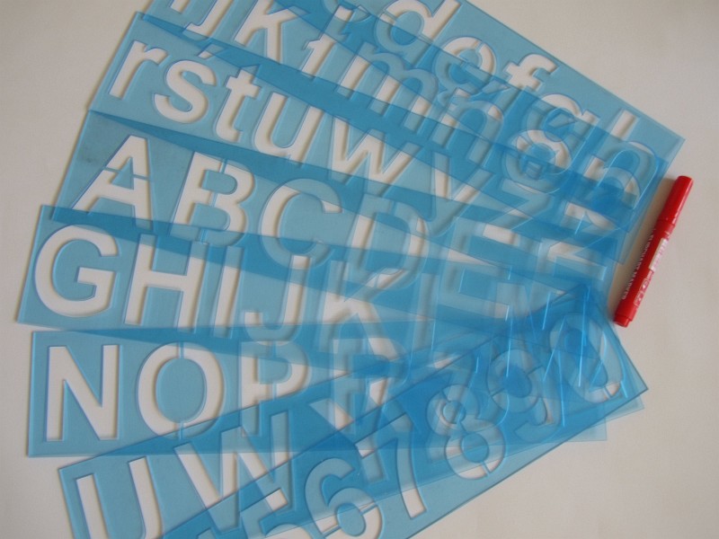 oraz szablony o różnej wielkości liter, cyfr i znaków wg nadesłanych propozycji lub projektów